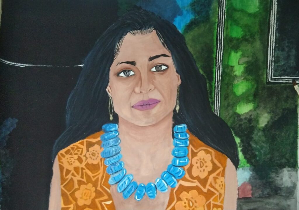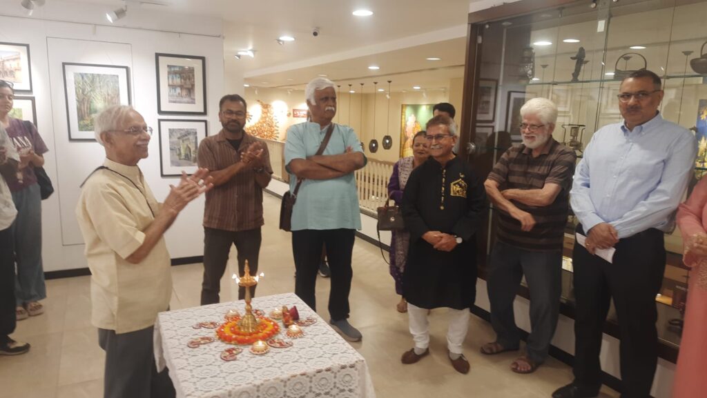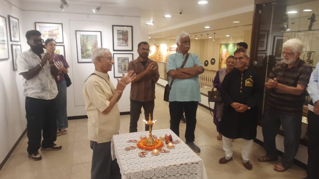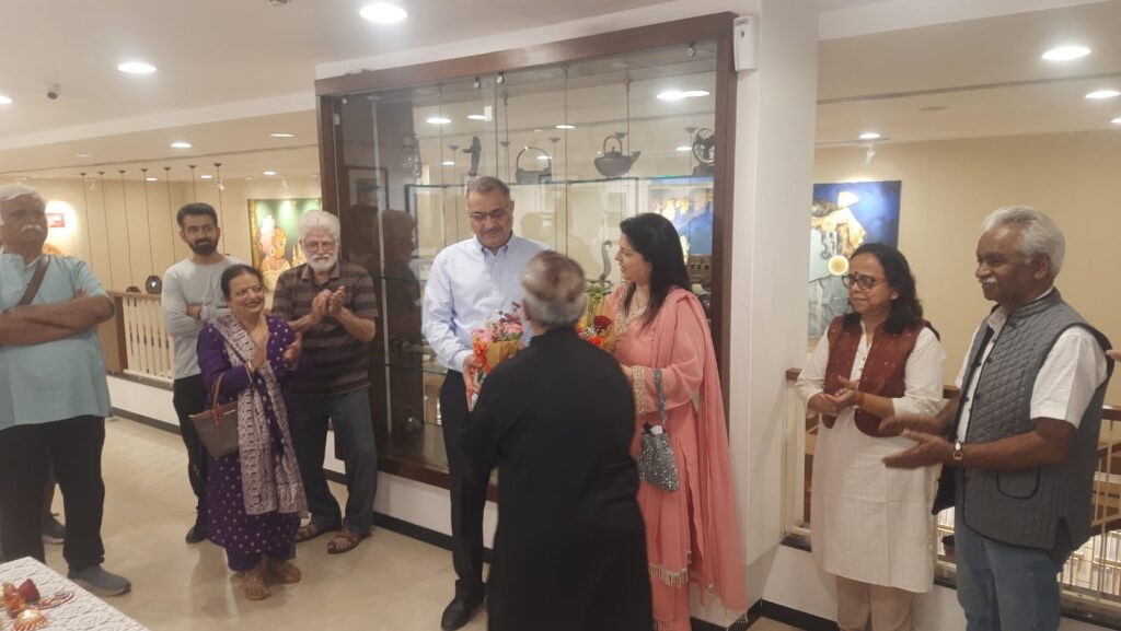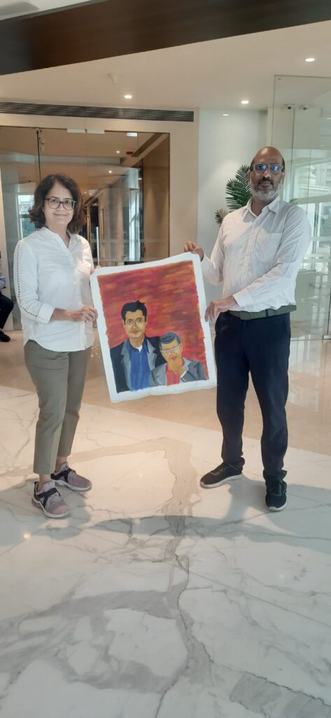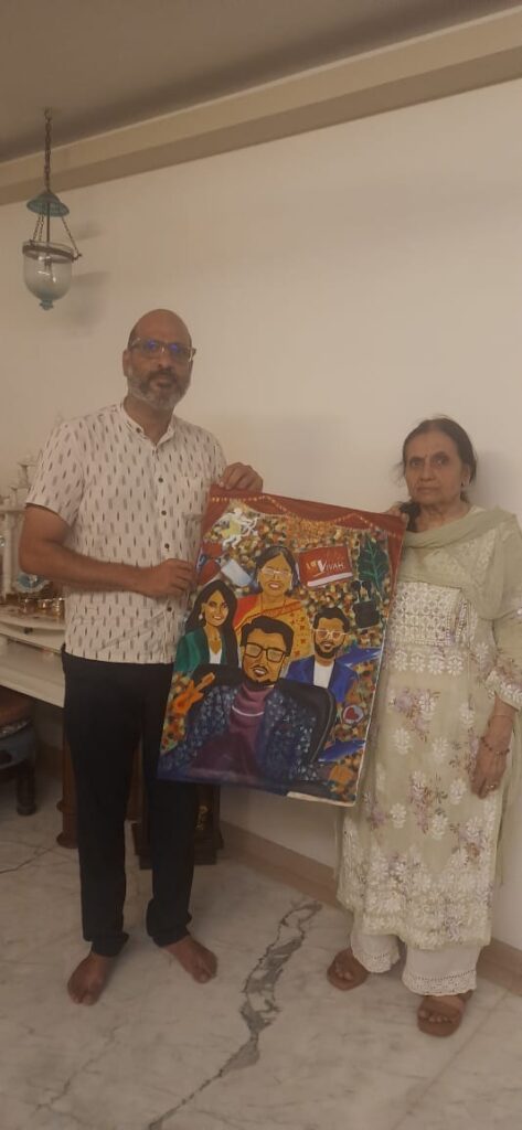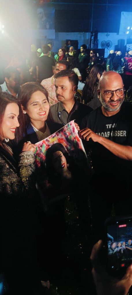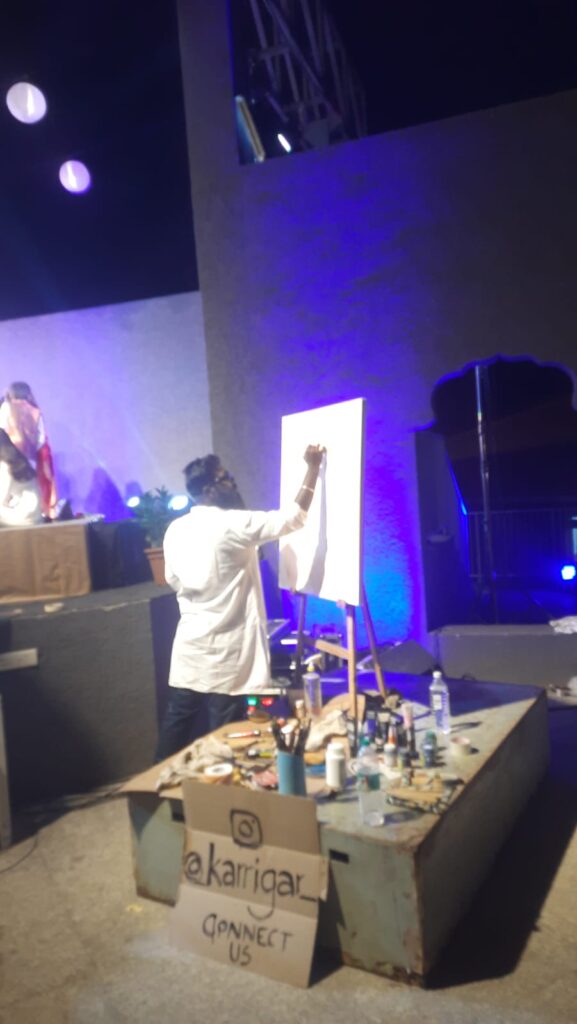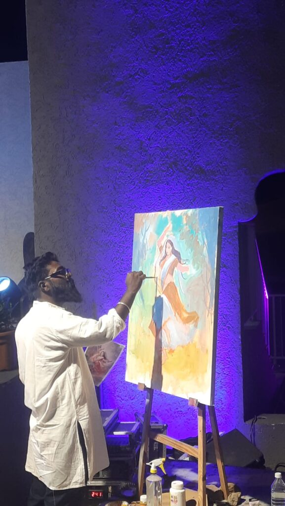 While Anirudh was painting his Radha, or the lady luck, in a dancing mood, with some fog and mist, he enjoyed the music and the painting while most of the audience was having a delightful experience of painting and music.