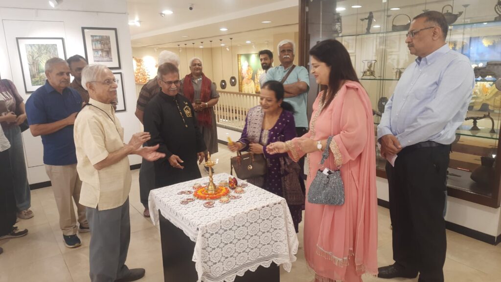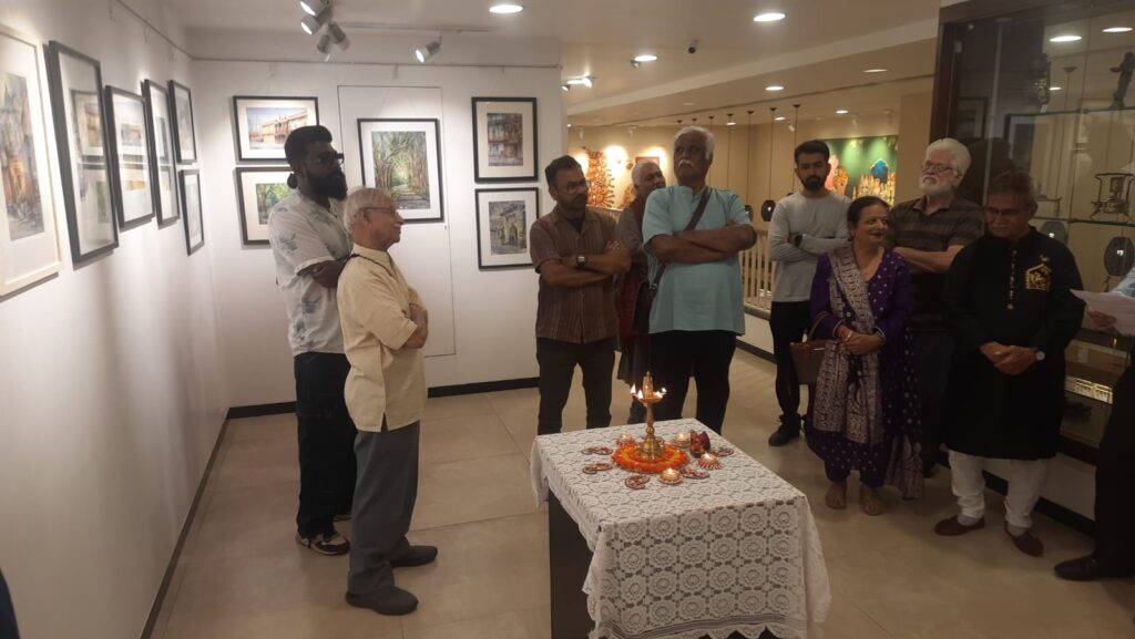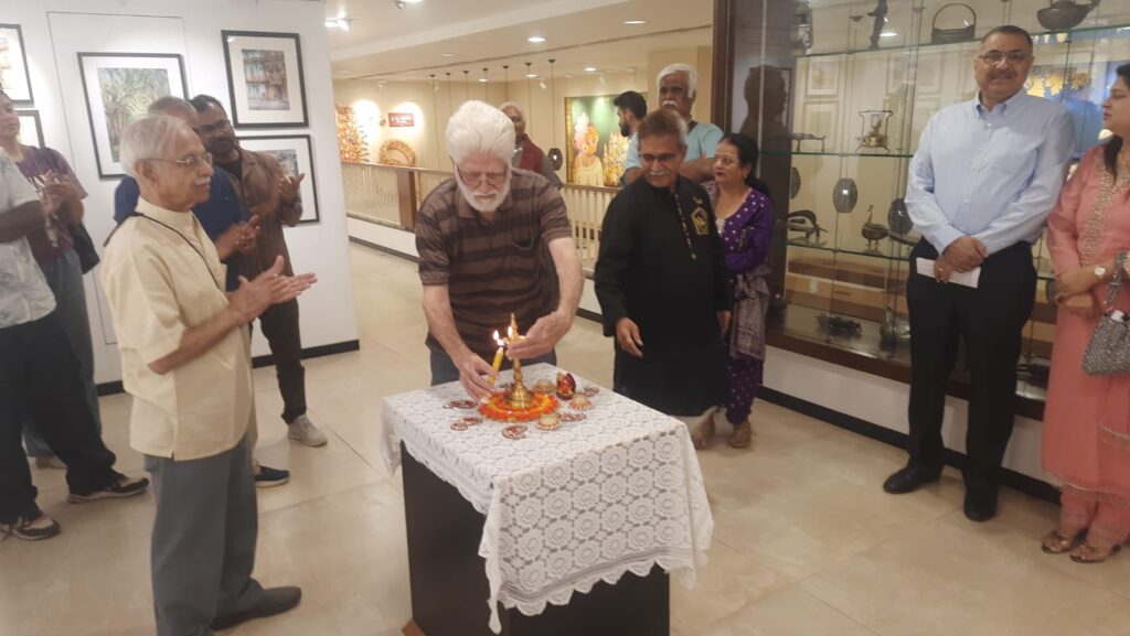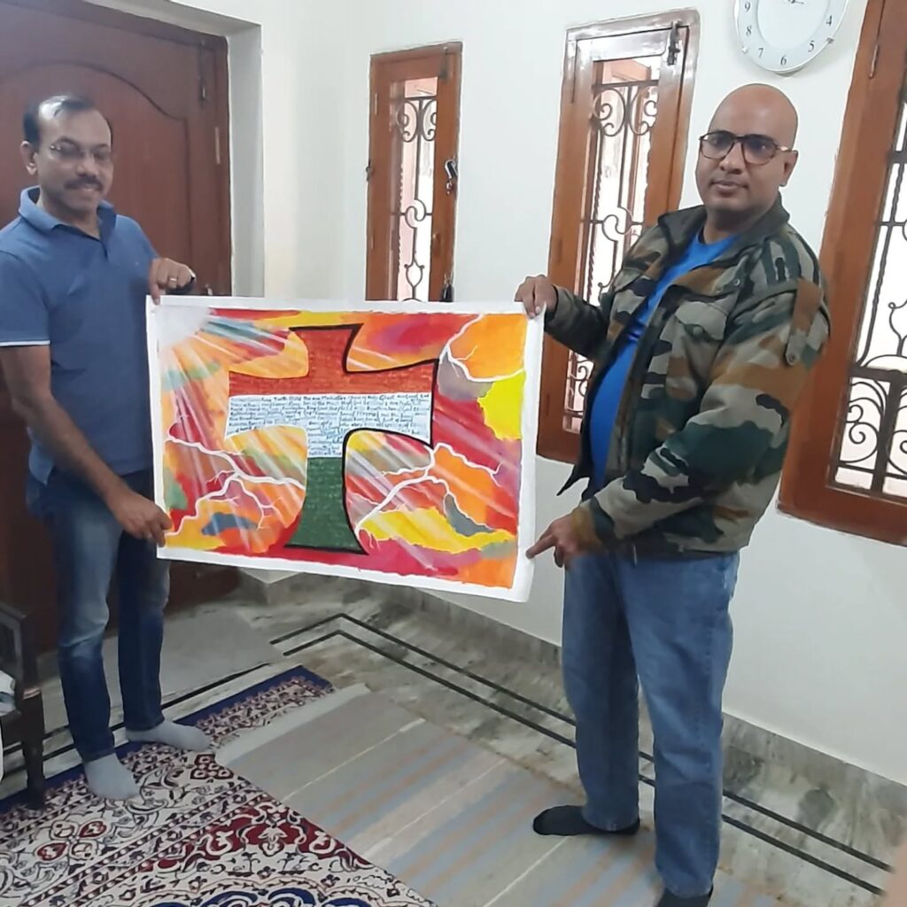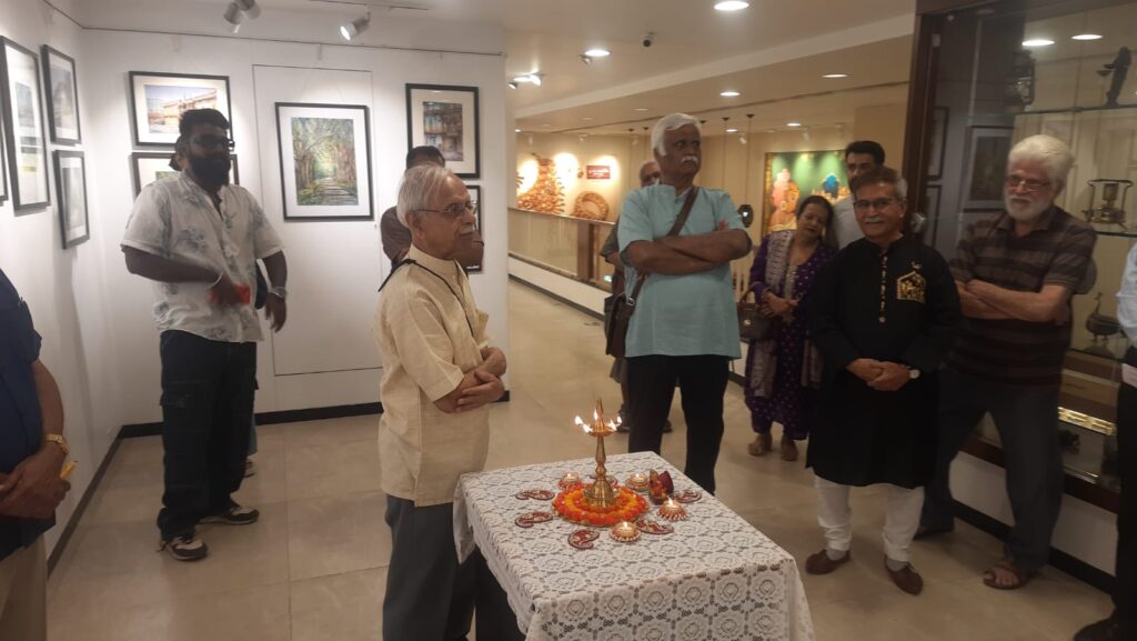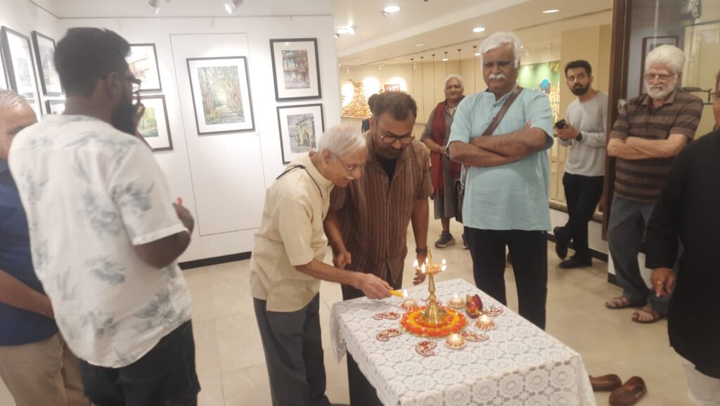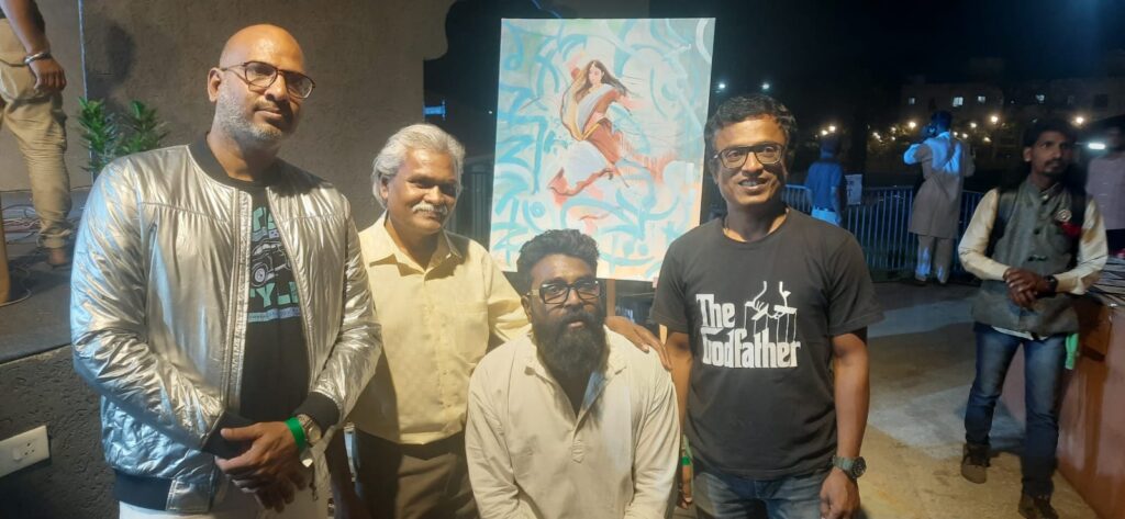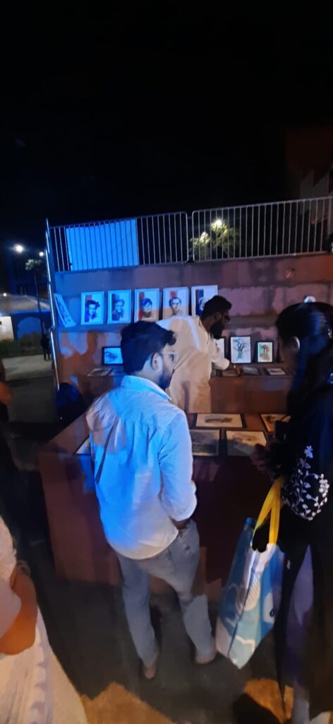 With a final flourish, Aniruddha adds his calligraphy to the portraits. Attending a few viewers at his stall and ending the show with a selfie with friends.
