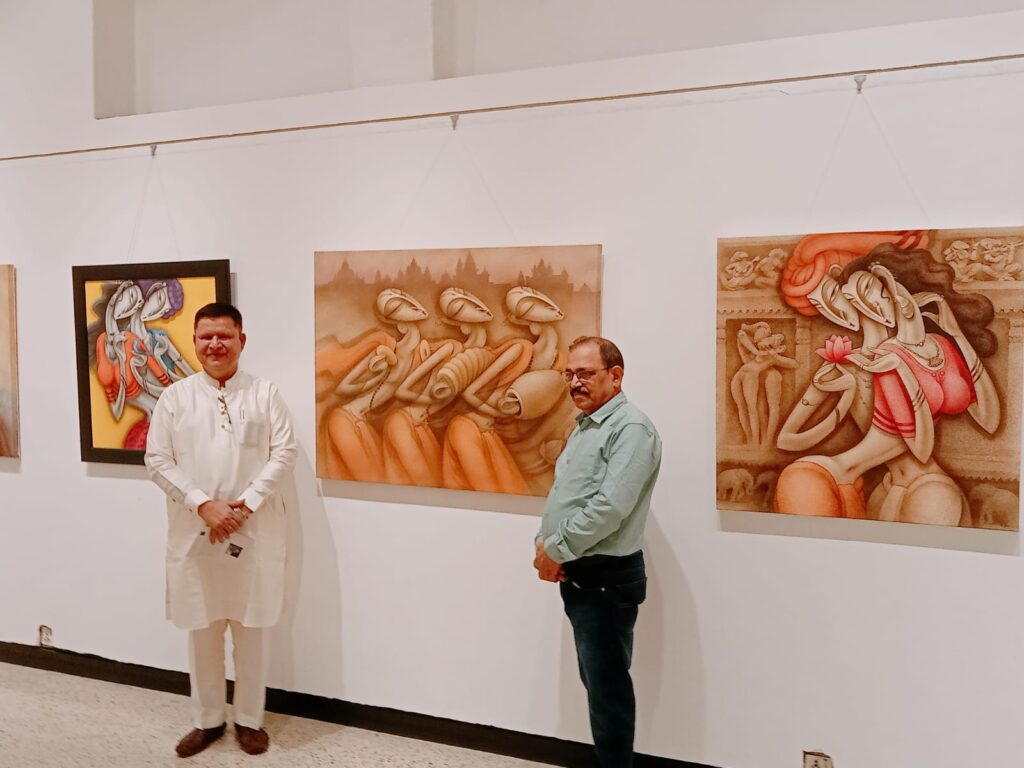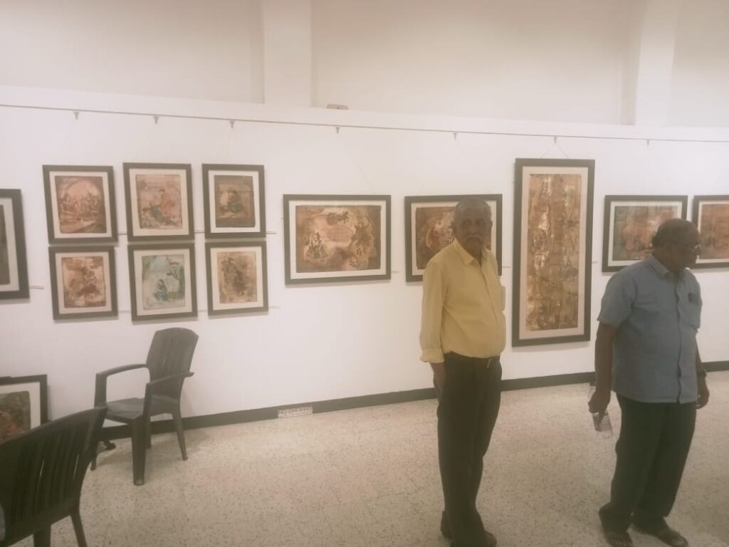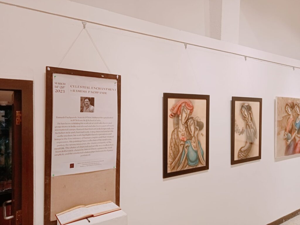 Bhiva has made this colourful wall of the gallery a success along with his daughter Puneri Punekar, also a NID pass qualified painter has expressed her paintings with real life moments of celebrations at monumental locations in India’ “Banaras.