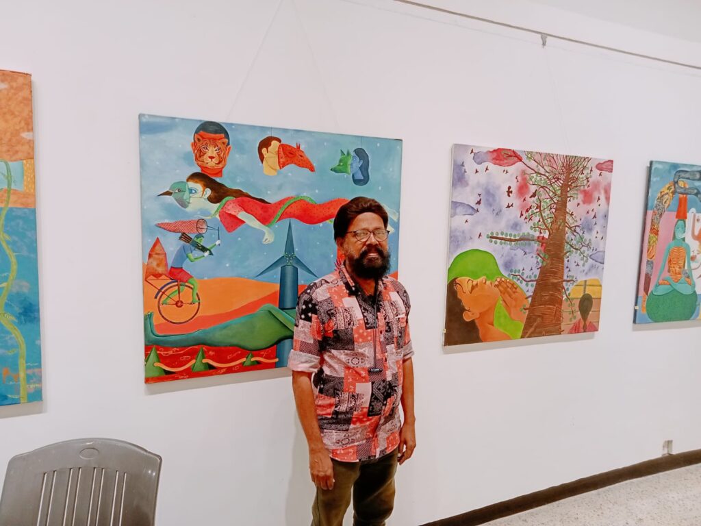 From Goa and has displayed a dreams unlimited with realms of life which we come across in our daily lifes in Goa or India. The auto-rickshaw, wild life, bikes, cycles and many of these elements have been painted and have decorated the walls of Jehangir Art Gallery.